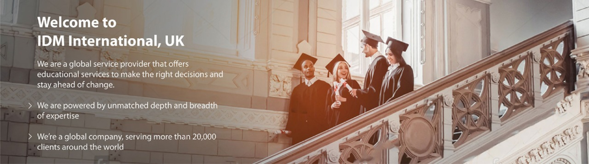 IDM International is one of the leading UK-based education service organisations providing quality academic and institution-related services for individuals and organisations who are aspiring to lead. Developed in accordance with British standards, IDM International's service meets the changing needs in a wide variety of sectors and career choices of young people all over the world.